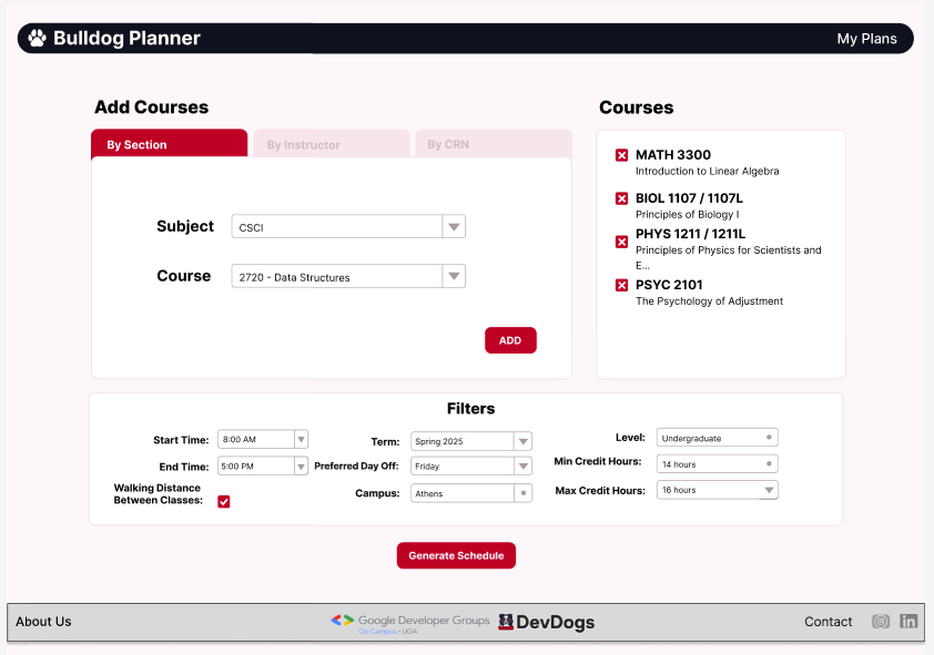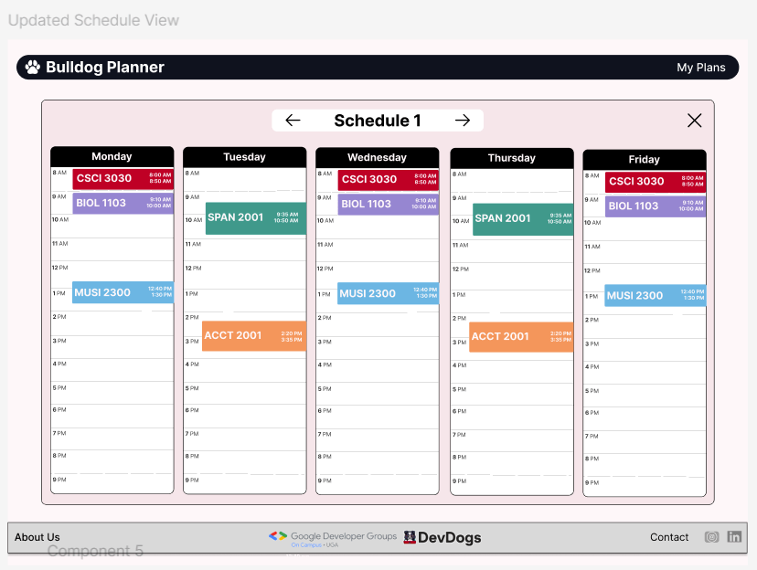Led a 5 member UI/UX team to design intuitive Figma web page designs for a full stack Optimal Schedule Builder project. Collaborated with front-end, back-end and algorithm leads to ensure designs were technically feasible.