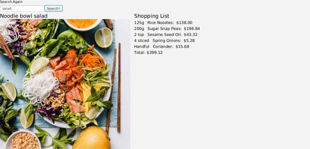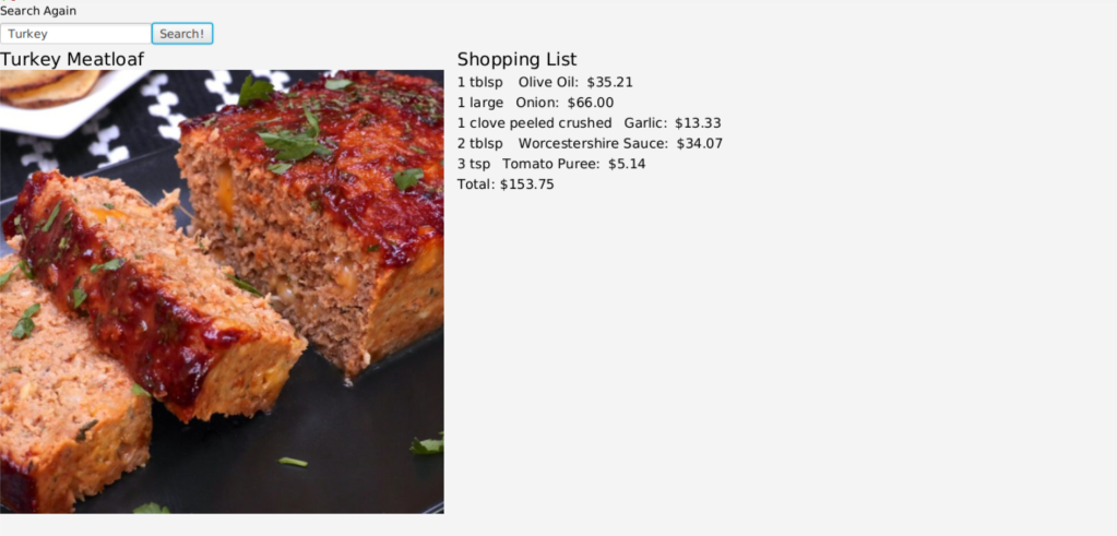 Created a JavaFX app that connected two API’s to curate a shopping list with ingredients and prices based on the recipe queried by the user.